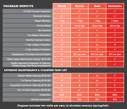 All programs include a semi-annual maintenance visit, a service reminder and a 15-point furnace inspection.